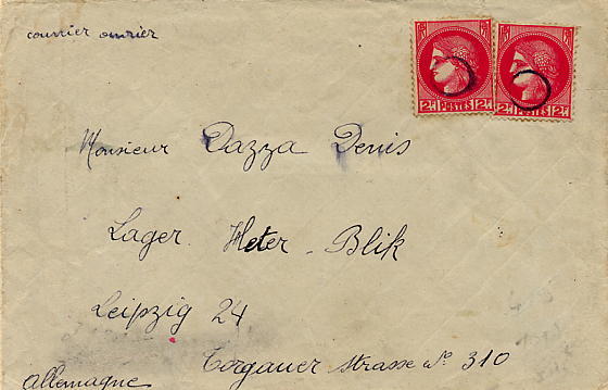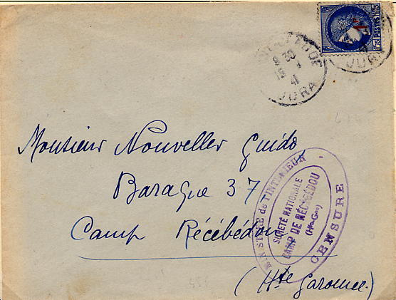 Courrier expédié à un prisonnier d'un camp de la zone libre ). |