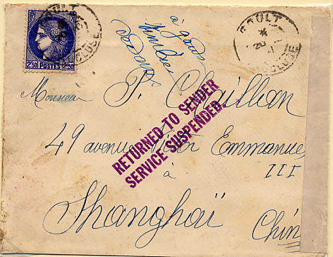 LSE renvoyée car la liaison postale vers la Chine est interrompue. |